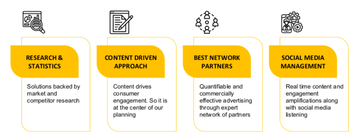 Full service digital media marketing agency, which works on multiple aspects of digital marketing supported by dedicated tech development team. The dedicated in-house team manages client’s social media platforms, influencer outreach, ORM (online reputation management), lead generation and performance marketing.